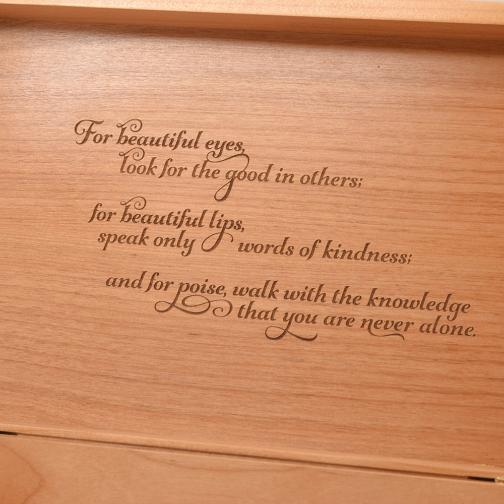 This beautiful sentiment is a quote from the one and only Audrey Hepburn. We think it's perfect for either a tea or essential oils box. You can add a name, date or some creative idea of your own!