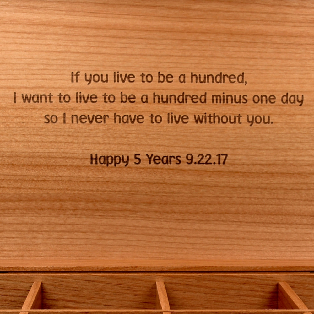 This quote was done inside one of our vintage Winnie the Pooh tea boxes. Feel free to request and customize it for yours. Wood is also the traditional 5th anniversary gift...so perfect!