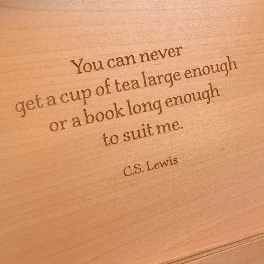 Any quote! It seems book lovers are also big tea drinkers, so they are sure to appreciate a favorite passage or quote from a loved author. This is one of our most popular personalized options! Get thinking!